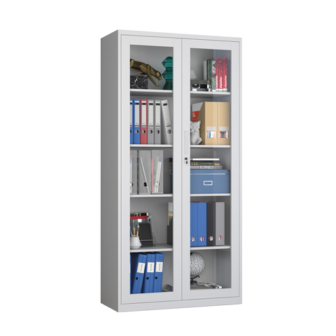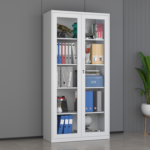 Thép lưu trữ nội thất văn phòng tủ 2 cửa kính kim loại Tủ hồ sơ với 4 kệ điều chỉnh